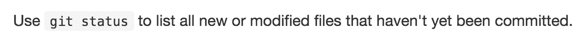 Use `git status` to list all new or modified files that haven't yet been committed.
